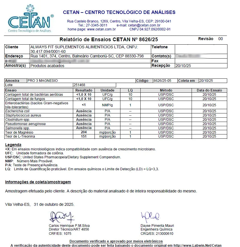 Fórmula exclusiva com três tipos de magnésio de alta absorção: treonato, dimalato e bisglicinato.