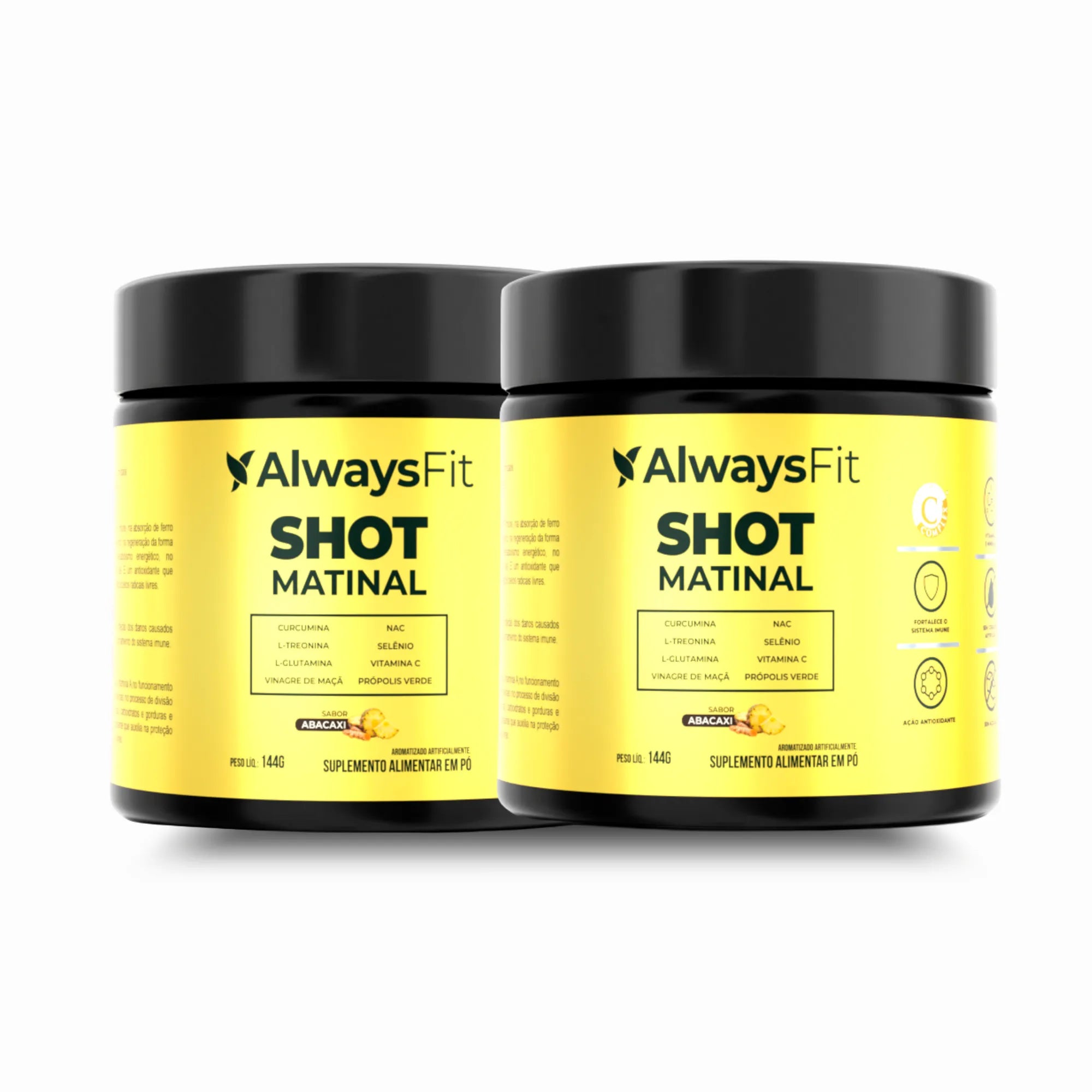 Shot Matinal Always Fit - Blend exclusivo Sabor Abacaxi com Curcumina, Glutamina, NAC, Vinagre de Maçã, Própolis Verde, Vit. C e +