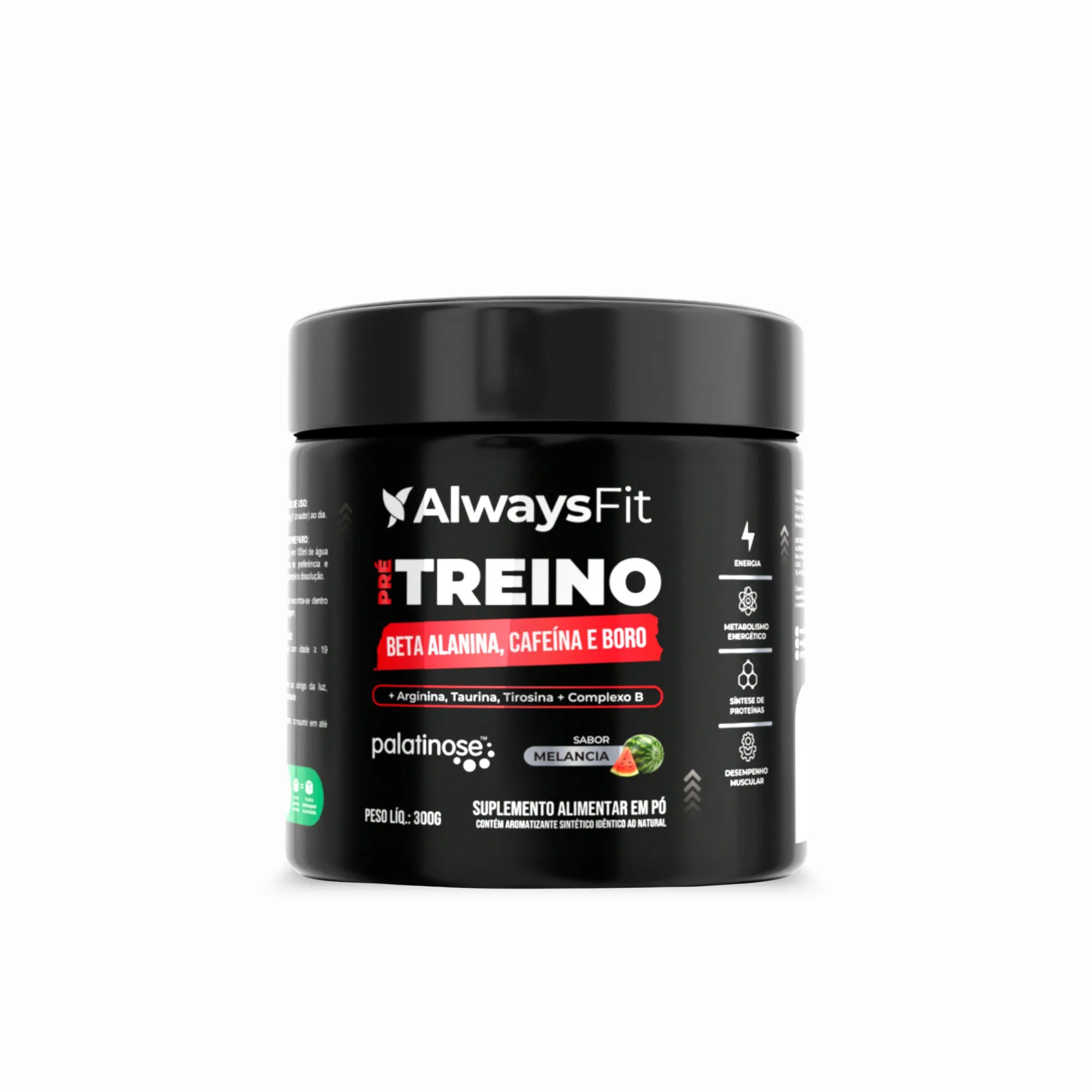 Agora com palatinose e adoçado com stévia, o Pré-Treino Always Fit oferece energia estável e gradual, sem açúcar, sem corantes e com o sabor natural da melancia.