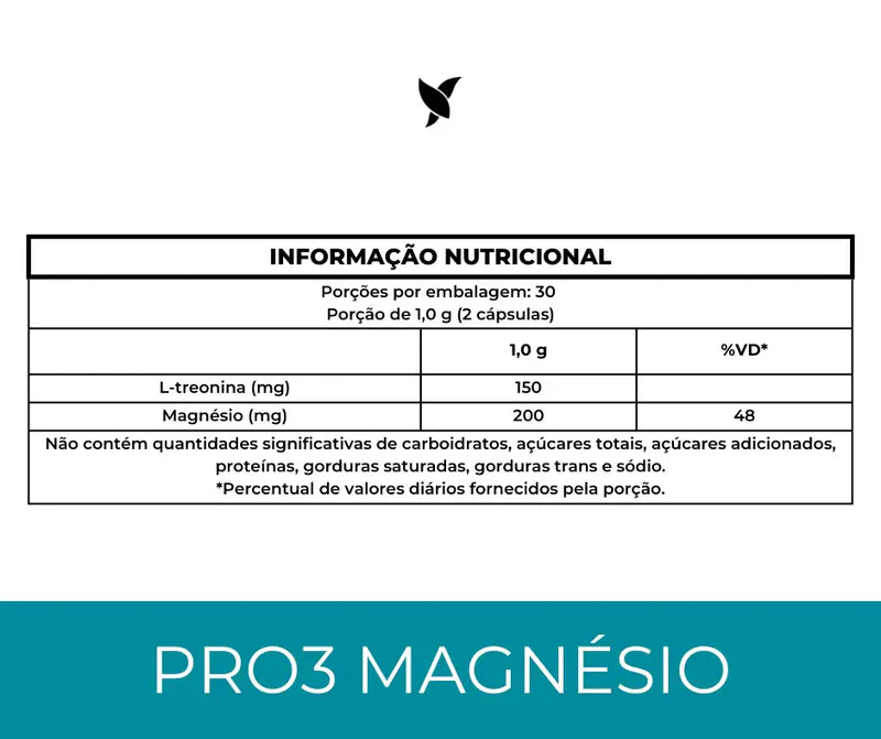INGREDIENTES: Bisglicinato de magnésio, malato de magnésio, óxido de magnésio, L-treonina e antiumectante dióxido de silício. Ingredientes da cápsula: gelatina.