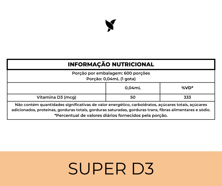 A Super Vitamina D3 é um suplemento alimentar em gotas que fornece 2.000 UI de vitamina D3 (colecalciferol) por dose. Com alta concentração em apenas uma gota por dia, é ideal para complementar dietas com baixa exposição solar e atender às necessidades diárias dessa vitamina essencial.